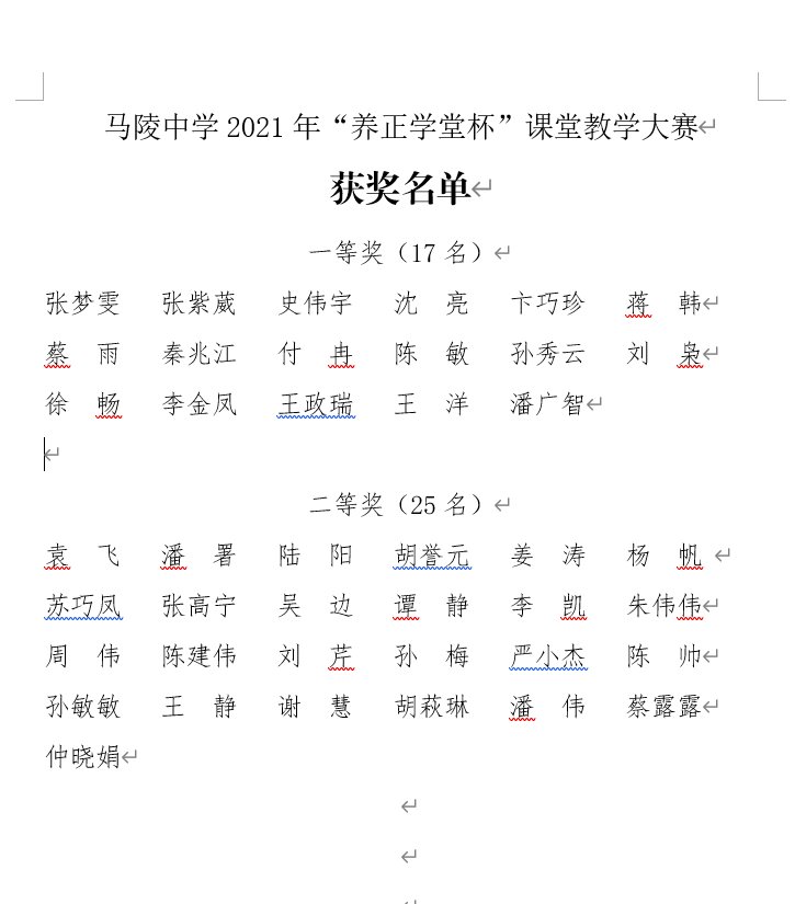 2021年度“养正学堂杯”课堂教学大赛获奖名单