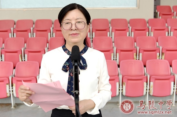 王丽梅讲话。首先,她回顾了我校百年成长历史,介绍了人民解放军炮兵创始人朱瑞,中科院院士、著名物理学家张裕恒,新中国冶金工业部部长陈绍昆,“中国好人”、“全国最美警察”、联合国“爱心大使”陆迅等杰出校友。接着,她盘点了我校上一学年在高考、小高、学科竞赛、教师队伍建设、教科研、党群工作等方面取得的成绩并明确了接下来的发展目标。她深情地说,回首过去,收获的喜悦与奋斗的艰辛交织交融;展望未来,责任的重大与追求的高远同时同在。过去的成功已经成为我们今天奋斗的起点,未来的辉煌将会是我们每个陵中人不变的追求。最后,她向同学们提出了几点希望:一是坚定理想信念,胸怀远大志向。怀着一颗进取的心、一份坚定的信念,击楫奋进,自强不息,成为德智体美劳全面发展的社会主义建设者和接班人。二是严守纪律规范,养成良好习惯。严格遵守各项纪律规范,提高文明素养,增强交通安全意识,厉行节约,做一名严守纪律、品行优秀、追求卓越的新时代陵中人。三是扎实勤勉学习,不懈奋斗进取。继承和发扬五四精神,坚定理想信念,努力拼搏,勇毅奋进。