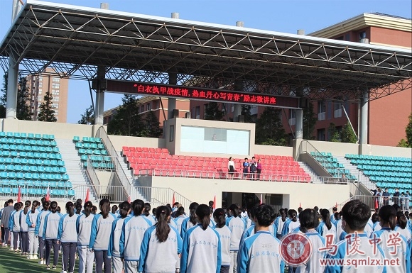 丁莉莉的讲述,如涓涓细流触动着在场的每一位师生。高三22班曹佳玉同学代表全体学生向丁莉莉献上鲜花,她说,要以抗疫英雄为榜样,铭记他们的感人事迹,把自己的理想同民族复兴的伟大目标结合起来,立志成为国家的栋梁。