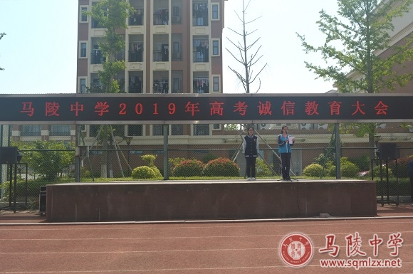 高三(17)班吴迪作国旗下讲话。她号召大家诚信应考,凭真才实学发挥出色水平,以昂扬姿态展现各自风采。她代表全体同学立下誓言:今年的六月,高三必将横刀立马,锐不可当,圆梦高考,再创辉煌。