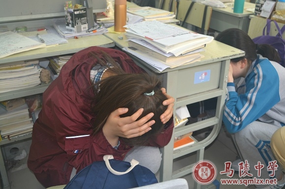 上午9点34分,避险警报拉响,学生们在老师的组织下就近躲避,迅速蹲到坚固的课桌下、墙角边,用双手护住头颈部。随后疏散警报响起,老师立即组织学生们手扶楼梯栏杆,快速、有序地沿着指定路线撤离。每一栋教学楼楼道、过道、出口处,都有工作人员引导。