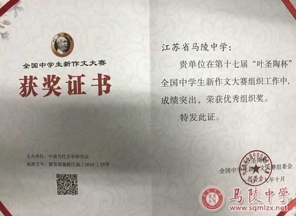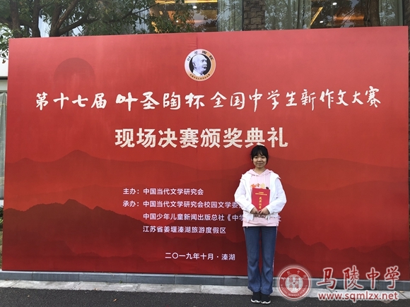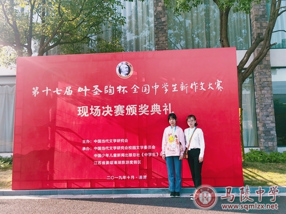在第十七届“叶圣陶杯”全国中学生新作文大赛现场决赛中,我校高三(14)班朱奕抒同学获得全国一等奖,张梦雯老师荣获优秀指导教师一等奖,这也是近两我校在“叶圣陶杯”这项全国最高作文赛事中取得的最高奖项。颁奖典礼10月20日在泰州举行,朱奕抒同学及其指导老师张梦雯受组委会邀请,代表我校七位入围决赛的同学和六位指导老师参加了这次盛会。典礼上再传捷报:我校荣获优秀组织奖。
