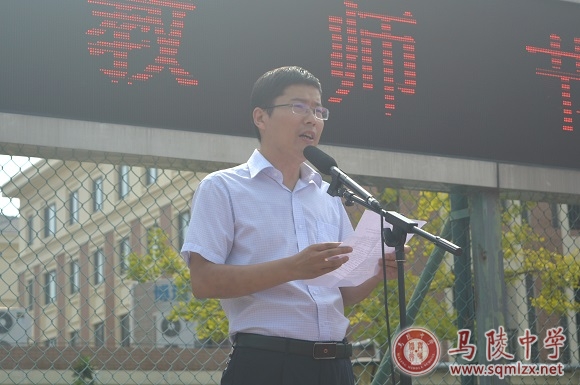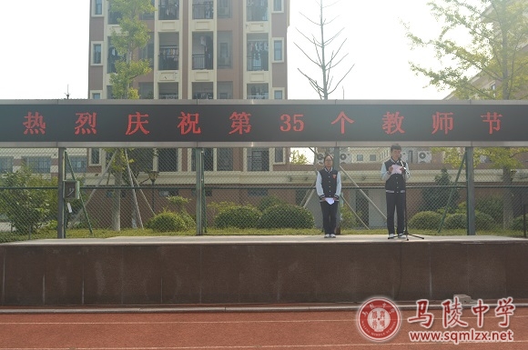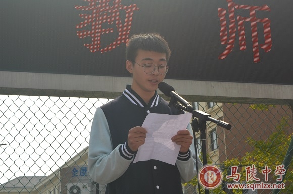 高二(21)班马力作为学生代表发言。他说道:“尊师重教不仅仅是我们的节日教育内容,也是我们每人每天的品德修养必修课。”