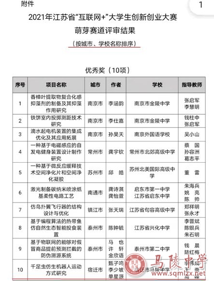 8月19日答辩采用视频连线的形式进行。在答辩过程中,三位同学准备充分,沉稳大气,思维敏捷,清晰应答专家评委提出的问题。近日好消息传来,我校顺利通过专家审定,在参赛的获省第32届青少年科技创新大赛一等奖的38个项目中脱颖而出,获得前10名的优异成绩,作为优秀作品入选全国总决赛。