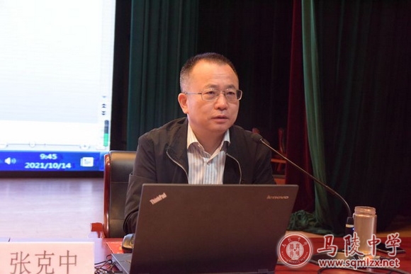 随后,省教研室语文教研员、正高级教师、省特级教师张克中老师作《选择性必修教材的编写意图与实施建议》讲座。讲座中,张老师从选必教材如何使用谈起,围绕新课标理念、任务群教学、教材架构与内容,细谈学科素养,详述教师学科责任,展示优秀任务设计,总结分享评价方法。整场讲座,张老师引经据典,旁征博引,既有高屋建瓴的理论阐述,又有生动鲜活的案例分析,具有很强的针对性、指导性,为我们使用新教材指明方向。
