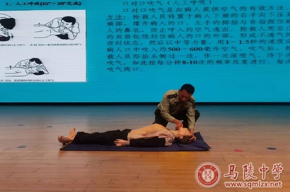 10月11日晚,武警宿迁支队卫生队队长李耀辉应邀到我校为高一学生开展救护基本技术培训。本次培训,旨在普及应急救护知识和技能,提高同学们在意外伤害发生时的自救互救能力。培训由学生处副主任常江主持。