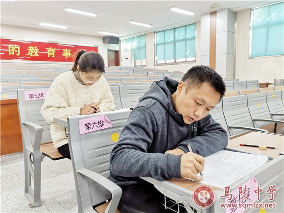 在高一、高二学生考试的时间段内,设置在我校阶梯教室1的教师考场内老师们也正在奋笔疾书。考试过程中,老师们都能自觉遵守考场纪律,认真答题。学校专门安排了部分教干负责监考。考试结束后,参加考试教师的答题卡由电脑阅卷平台评卷。