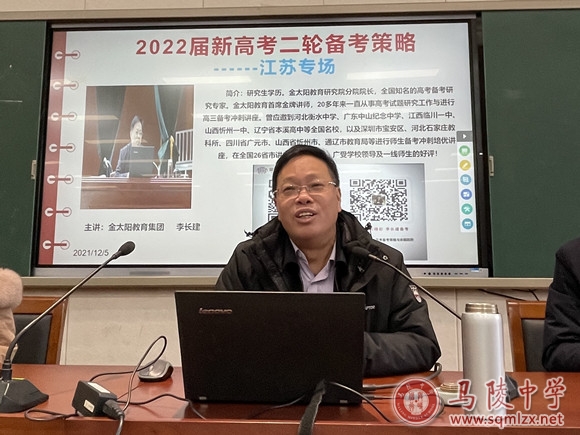 教育教学质量是高中学校生存与发展的关键,高三年级的教育教学质量更是关键的重中之重。为了进一步开展好2022届高三年级高考备考工作,科学备考,有力冲刺,12月5日下午,高三年级举办新高考一卷二轮备考策略讲座。本次讲座特别邀请全国著名高考备考研究专家李长健莅临讲学,副校长杨忠平、高三年级一部主任朱卫、二部主任李明及全体高三教师参加了会议。本次会议由杨忠平主持。