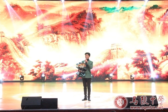 只有以河山为名的梦想才是亿万中国人的梦想,陈谱文演唱的《中华民族》《万里长城永不倒》《笑看风云》,用激昂的乐曲诉说着马陵学子在2022年再创辉煌的决心和毅力。