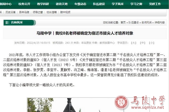 在2020-2021年优秀人才评选中,我校1位老师获江苏省第六期333高层次人才第三层次培养对象,1人入选宿迁市第二期千名拔尖人才第二层次培养对象,7人入选第三层次培养对象,2人入选宿迁市第八届名教师,10人入选宿迁市第十一届学科带头人,入选人数均居全市高中学校第一。