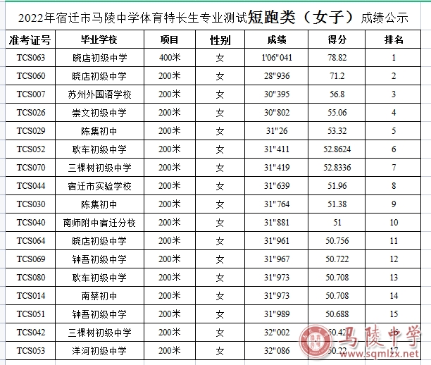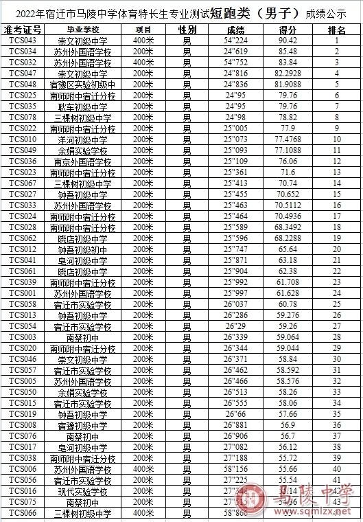 2022年宿迁市1888855体育特长生专业测试成绩公示