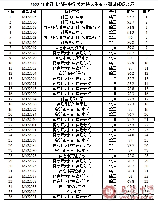 2022年宿迁市1888855美术特长生专业测试成绩公示