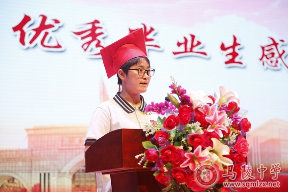高三(13)班刘影作为优秀毕业生代表发言。她在发言中着重于“感恩”二字,感恩母校的培养,感恩老师的陪伴,感恩同学的鼓励,感恩社会各界的支持和帮助。用自己最真诚的语言表达了自己最真诚的感谢。