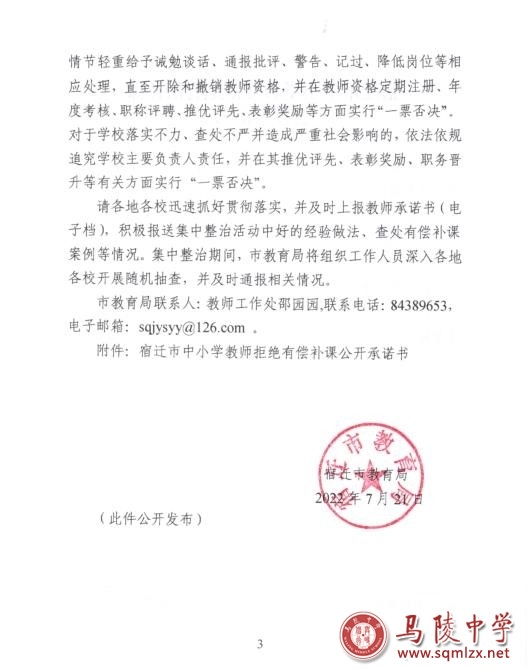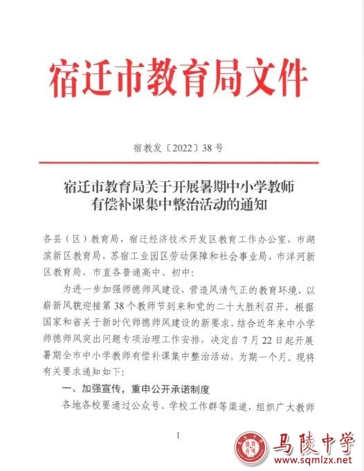 现转发《宿迁市教育局关于开展暑期中小学教师有偿补课集中整治活动的通知》文件如下,希遵照执行。