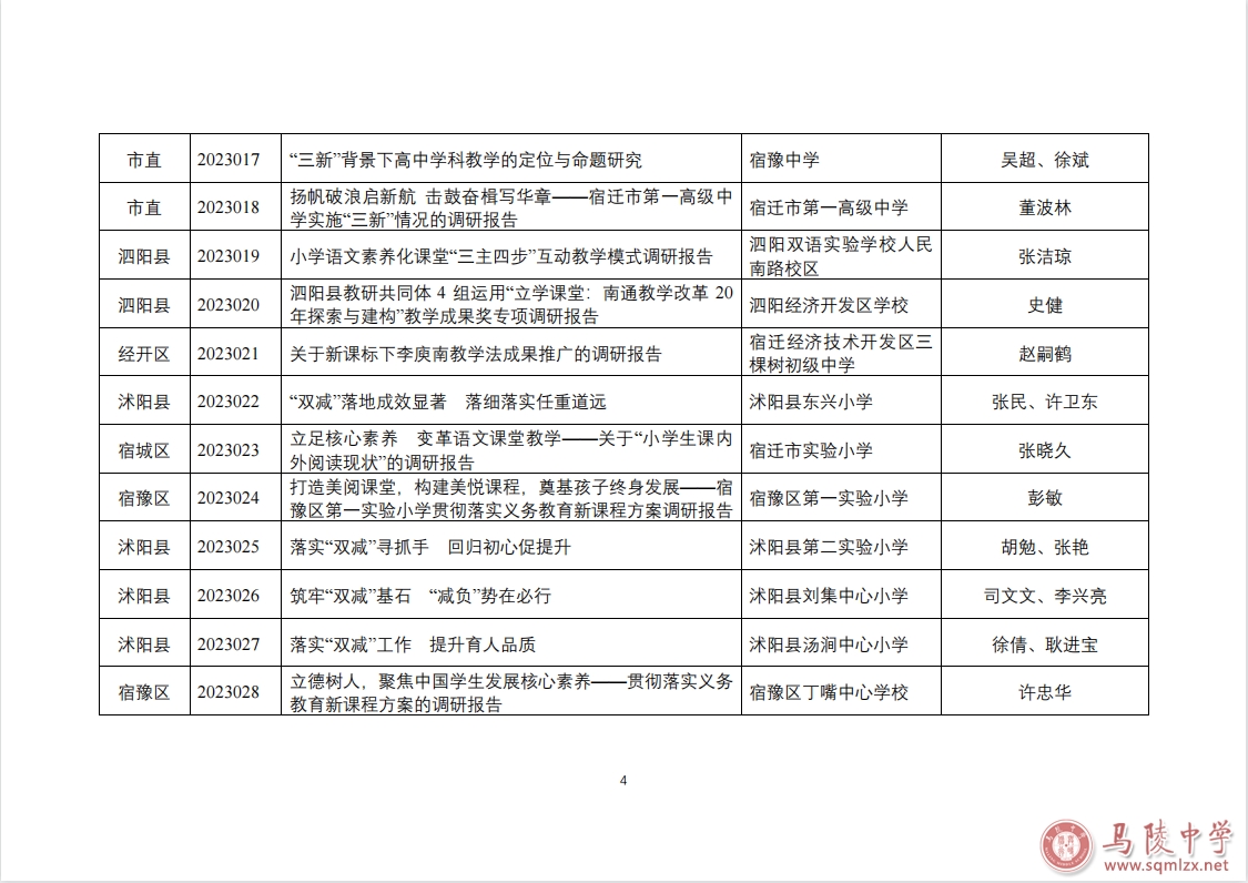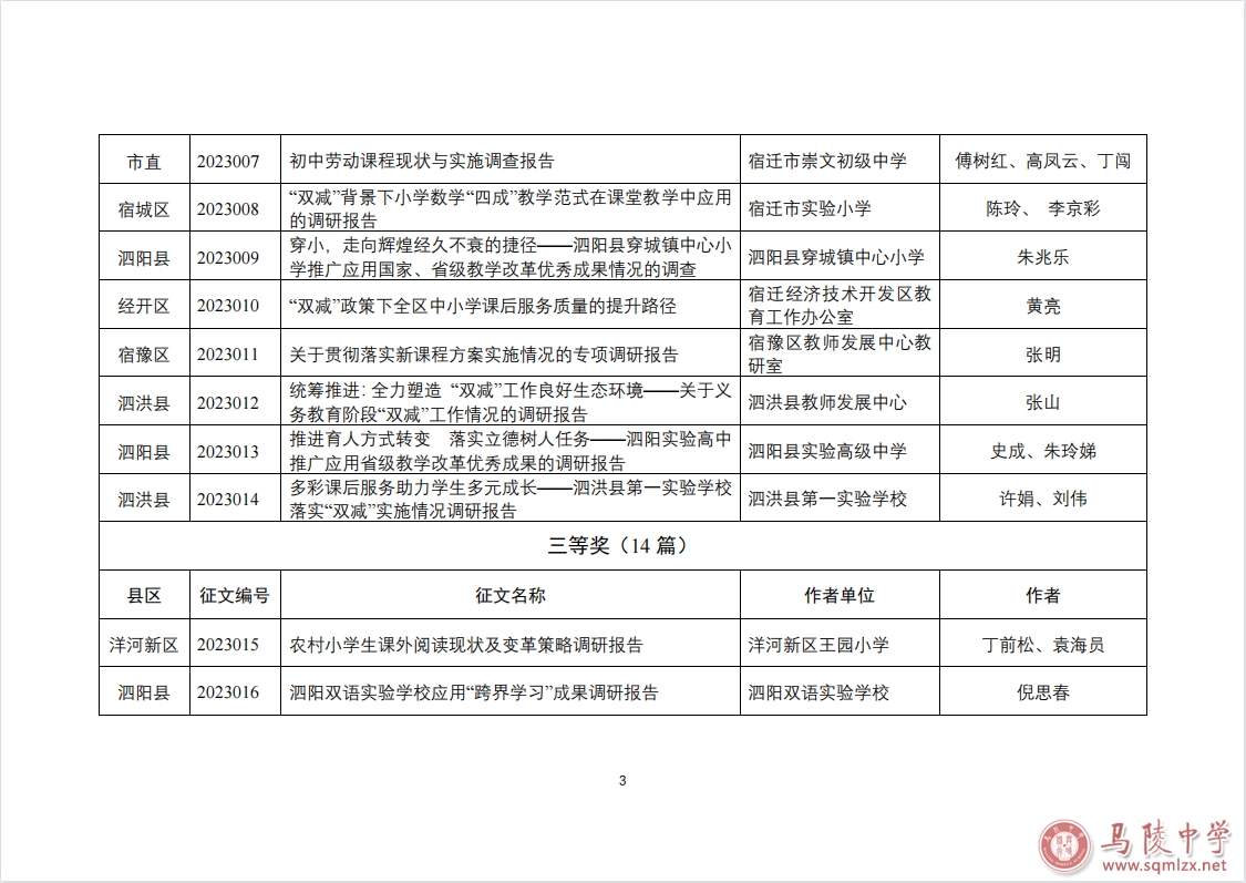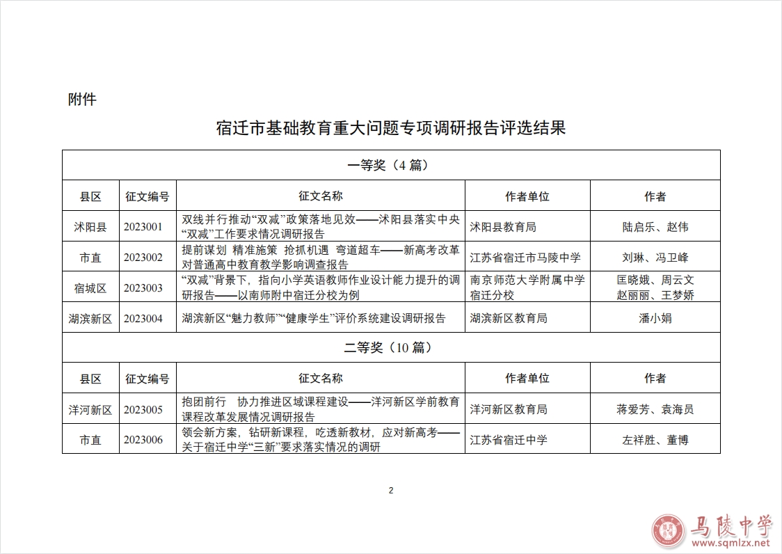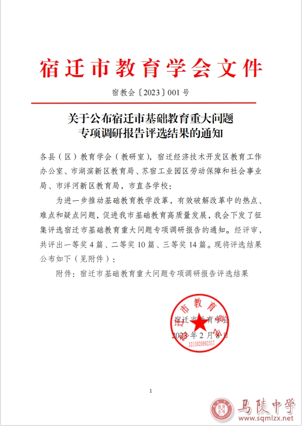 在近期举行的宿迁市基础教育重大问题专项调研报告评选活动中,我校刘琳、冯卫峰撰写的《提前谋划精准施策抢抓机遇弯道超车——新高考改革对普通高中教育教学影响调查报告》荣获一等奖。
