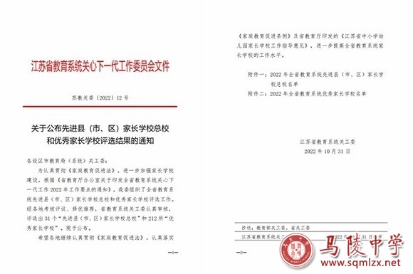 日前,江苏省教育系统关工委公布了2022年全省教育系统优秀家长学校名单,我校以优异成绩获评“江苏省优秀家长学校”称号。