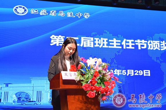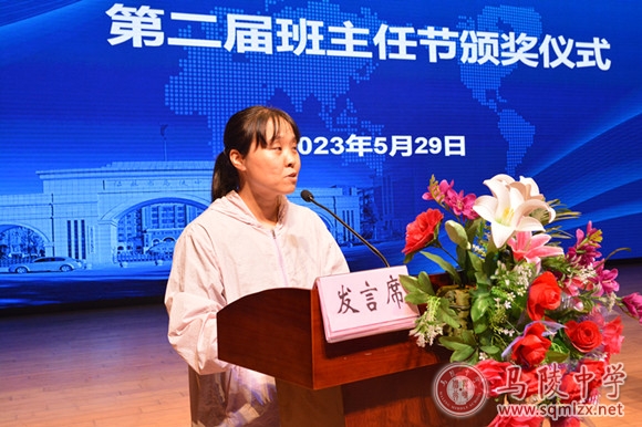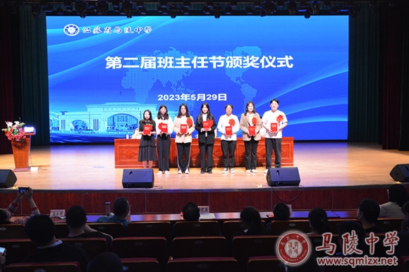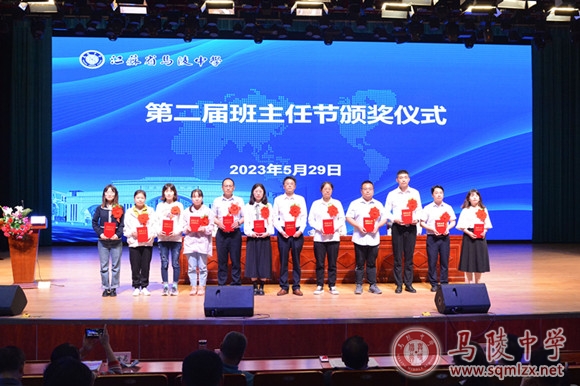 副校长蔡之刚宣读《关于表彰第二届班主任节活动中获奖班主任的决定》,校领导为获奖者颁奖。