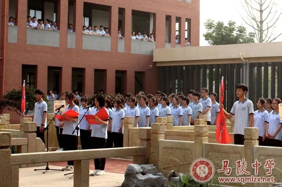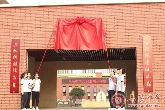 高三年级挑选六名品学兼优的学生代表共同为“桂园”揭牌。