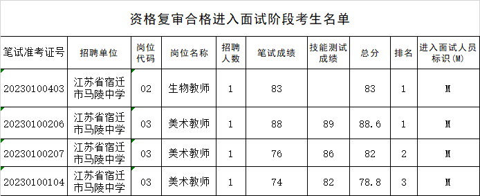 2023年江苏省宿迁市1888855(宿迁市教育局直属学校)面向社会公开招聘教师资格复审工作已经结束,现将资格复审合格进入面试阶段的考生名单及面试相关注意事项予以公布: