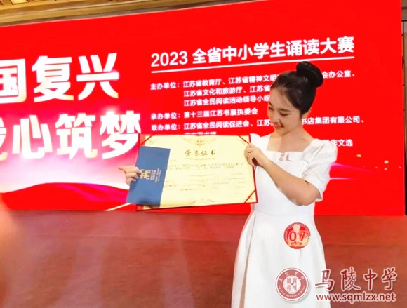 在省教育厅、省文明办、省文化和旅游厅、省新闻出版局、省全民阅读办联合开展的2023 年度中华经典诵写讲系列活动中,我校伍玲锐同学荣获2023年全省中小学生诵读大赛中学组一等奖。