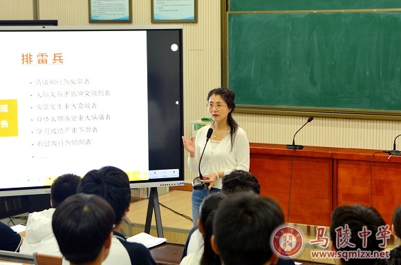 首先,学生成长指导中心负责人袁艳红从分析高中生心理健康现状入手,对心理助理员设立的背景与意义进行了详细解读。接着,她向心理助理员们说明了工作职责和注意事项,要求大家从“知心人、观察员、排雷兵、传声筒”四方面做好角色定位,发现问题时要及时向班主任和心理老师反馈。