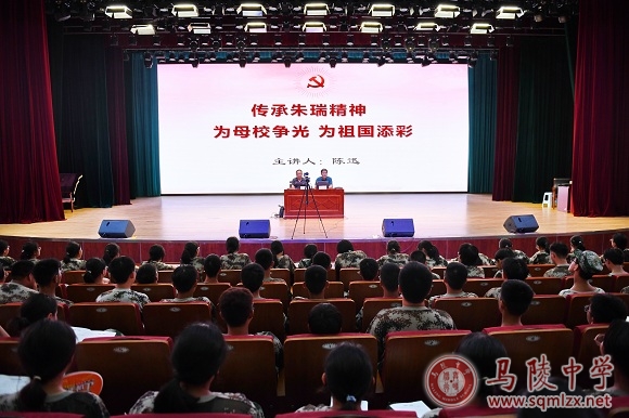 天地英雄气,千秋尚凛然。无数英雄先烈是我们民族的脊梁,是我们不断开拓前进的勇气和力量所在。为进一步传承红色基因,感悟英雄精神,8月10日晚,我校特邀请宿迁市朱瑞研究会常务副会长陈迅,为高一新生开设朱瑞将军事迹报告会。报告会由副校长蔡之刚主持。