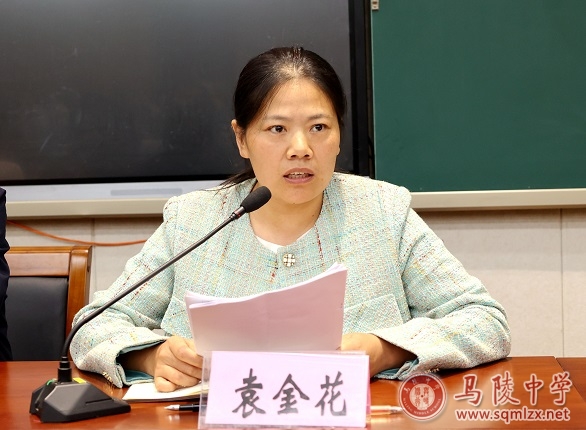袁金花对教育教学管理补充四点要求:眀确目标,突出优生培养,强调一个“实”字;强化责任,做好成绩定位,突出一个“准”字;有效教学、高效教学,凸显一个“真”字;重视反思,适时调整进度,把握一个“度”字。
