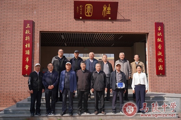 然后依次参观了桂园、鸣池、校史馆。桂园中看锦鲤舒畅,舒正气浩然;鸣池畔闻鸟语花香,赞和谐自然;校史馆内忆峥嵘往昔,感筚路蓝缕。参观结束后,与会老同志在养正楼合影。
