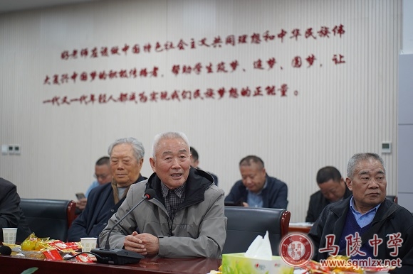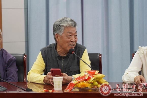参观结束后,老同志回到会议室。宋志平代表学校发言。他首先代表学校领导班子亲切问候各位老同志,指出学校的发展离不开老同志的奉献。接着向老同志汇报学校办学成果:高考成绩突飞猛进;教师队伍愈发成熟;育人环境日益改善;学校管理从“仁”从“真”。当然未来的路还很长,所以还要再努力,用更好的成绩回馈社会信任。