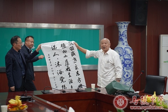 接着谢成夫老师介绍校史馆建设情况。徐松老师为学校献上书法和国画梅兰竹菊各一幅。鲍希奎希望学校坚持以人为本的办学理念,发展的越来越好。韩玉林回顾学校发展历程,肯定了学校的成绩,表达了老教师对历任校长的认可。丁绍美、高爱华、臧德年三位老教师都对学生的人文素养感到满意,希望学校能通过各种方式扩大宣传、扩大影响。