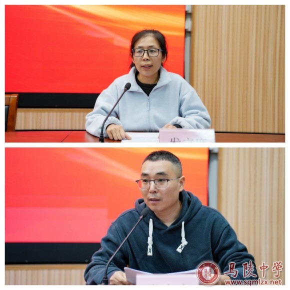 其次王笑、秦兆江两位青年教师作为教师代表发言。王笑老师回顾从教以来自身成长历程,从上好每一节课、听好每一节课开始,不断向“师傅”学习,沉下来钻研新课标、新教材、新高考,不断提升自身教学能力。