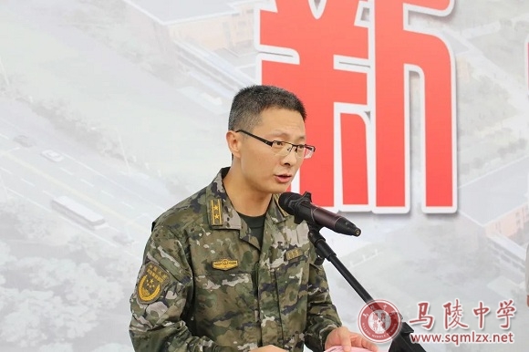 高一(10)班孙儒铖同学代表新生郑重承诺:军训是我们完成高中学业的第一步,将成为砥砺我们意志的第一块试金石。请相信我们,我们一定会珍惜军训机会,以振奋的精神、饱满的热情参训,圆满完成军训任务;我们一定会勇攀高峰,用自己的坚毅、刻苦、诚实、勇敢,留下我们在陵中三年的奋斗足迹!