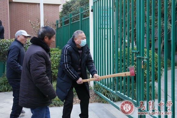 随后,学生们在班主任和宿舍管理员的引导下,进行了消防演练。在听到警报后,宿舍管理员迅速用消防斧头砸开宿舍院门锁,打开大门。