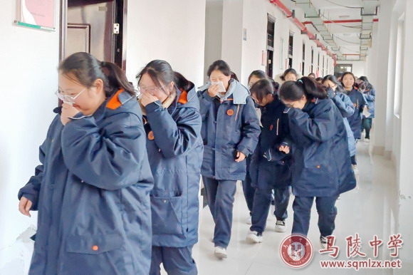 在值班班主任的指挥下,全体住宿学生迅速地从各自宿舍里往疏散通道撤离,只见他们表情严肃,用湿毛巾捂住口鼻,猫着身子迅速而有序的按规定路线撤离模拟“火灾〞现场,跑到学校操场的平安地带集合,随即各班主任清点人数并逐级上报,整个过程用时2分钟。