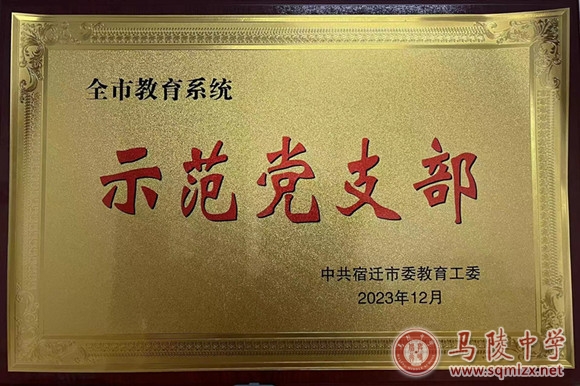 近日,1888855党委第一支部被中共宿迁市委教育工委评为2023年度全市教育系统“示范党支部”。