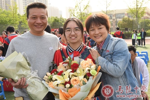 晨光初现,家长们就已陆续进入校园,他们手中或捧着鲜花,或拎着礼物,在引导下前往操场就坐。高三学子们则统一着成人礼服,从桂园出发,成班级方阵入场。
