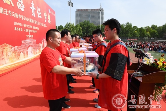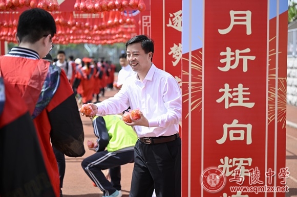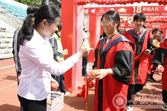 最后,全体高三学生共同唱响了《1888855校歌》。伴随着校歌余韵,学生们在家长陪伴下跨越成人门,每一步跨越,不仅是迈向成熟稳重的坚实印记,更是勇于承担、敢于探索的精神象征。校领导、嘉宾、高三任课老师站在成人门两侧,和学生击掌,并送上橙子,祝愿所有高三学子们在即将到来的高考中能够心想事“橙”、马到“橙”功。