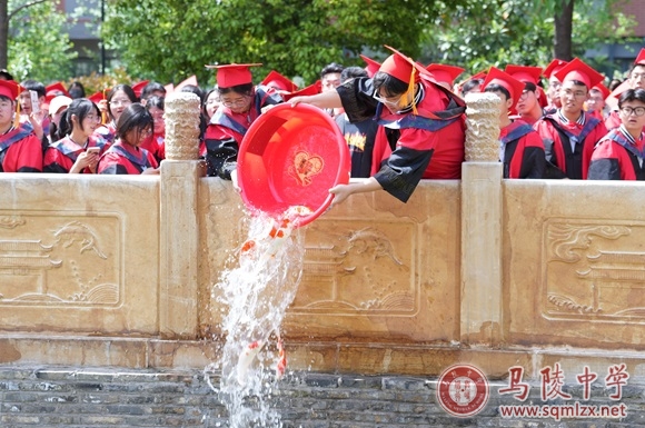 仪式全程深融中华传统文化内涵。学生们在《正气歌》朗诵声中感受强烈的爱国思想和民族精神,携浩然正气振奋前行;12名学生按传统仪式向龙门池中放生锦鲤,寓意学业有成,前程似锦!