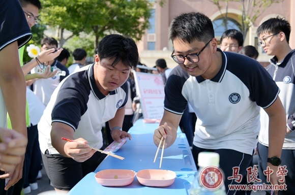 心态定不定,手底稳不稳,来此一试便知。两端的盘子间距离不算长,但在这个项目中仿若一道鸿沟,每个参与的同学无一不凝神屏气,双眼紧盯手中的筷子,生怕一个闪失,玻璃球中途“逃跑”。时常可见一些“功败垂成”的同学,他们在懊恼之余依然很快调整过来,兴致勃勃再次排队尝试。