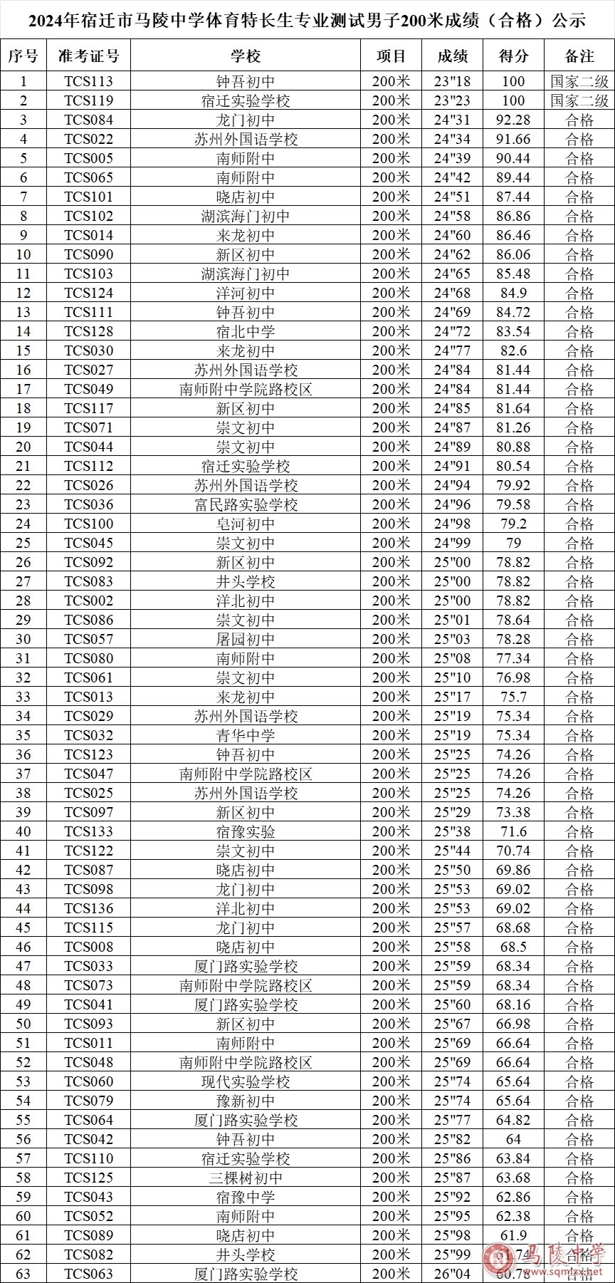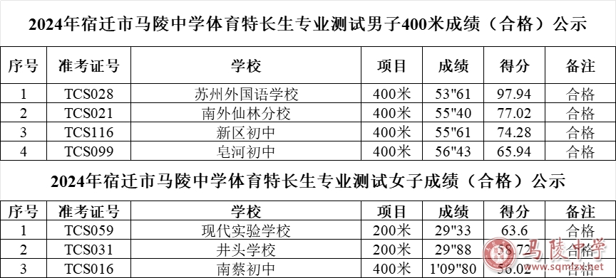 1888855丨2024年宿迁市1888855体育特长生专业测试成绩(合格)公示