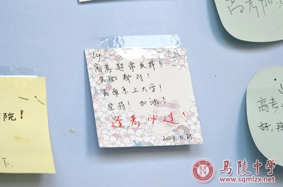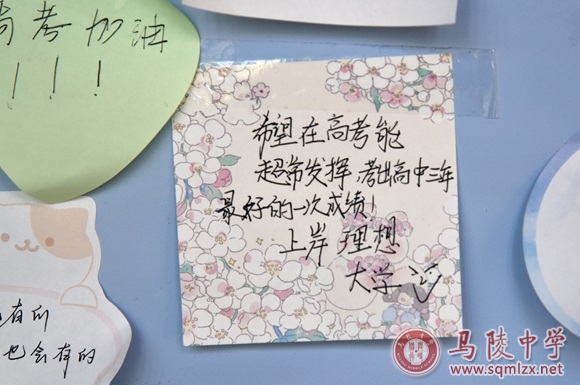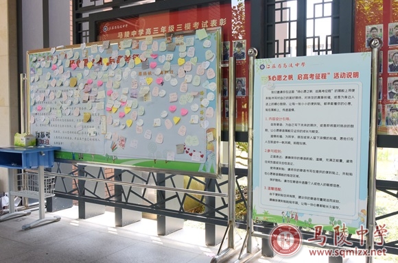 其中,“扬心愿之帆·启高考征程”活动尤为引人注目。邀请每一位高三学生在便利贴上书写对自己的美好期待、对亲友的真挚祝福,或是为身边的同学送上的暖心鼓励。这些承载着满满心意的便利贴,如同色彩斑斓的风帆,飘扬在展板上,传递着温情与力量。