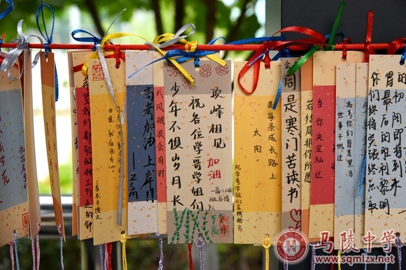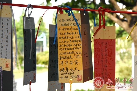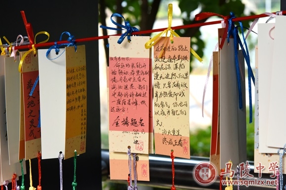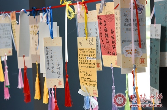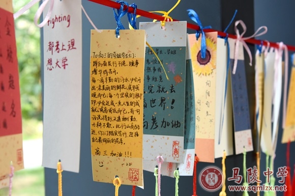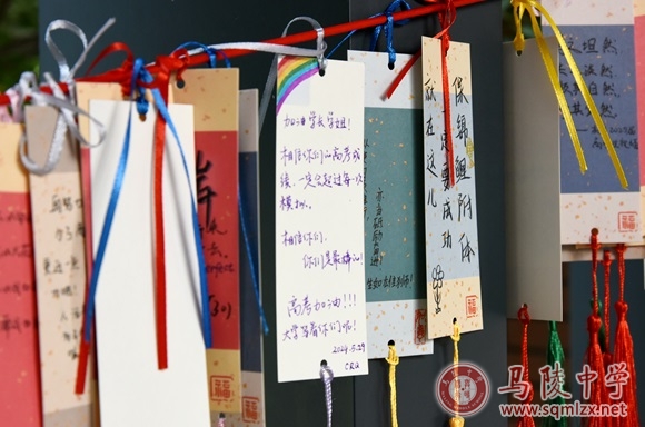 同时,高一、高二的学生也积极参与到“高考助力站·梦想风帆扬”的活动中。他们将自己的祝福与鼓励化作精美的书签,如同迎风招展的风帆,轻轻飘荡在展览的绳索上,为学长学姐们的高考之路增添了一抹亮色。这些书签上不仅写满了鼓劲与祝愿,还分享了一些自身的心态调节、复习备考心得,希望能为学长学姐们提供有益的参考。