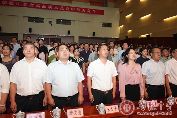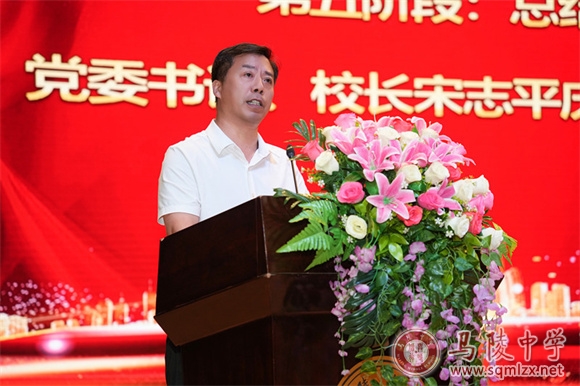 红旗招展,决胜未来。2024届高三年级分管领导、工会主席袁金花向党委书记、校长宋志平呈旗。党委书记、校长宋志平向2025届高三年级分管领导、副校长蔡之刚授旗。