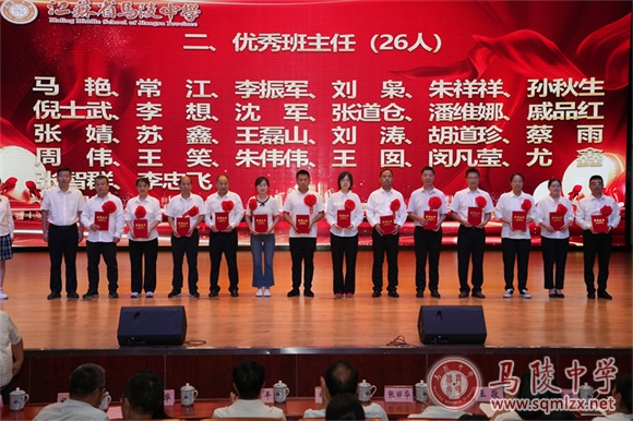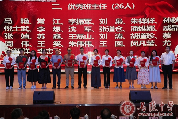 学校领导为获得2023年度目标考核优秀奖、优秀班主任奖、优秀教育工作者奖、教科研先进个人奖、优秀学科中心副主任奖、招生工作先进个人奖、优秀宣传员奖、青蓝工程优秀指导老师奖、青蓝工程优秀青年教师奖、优秀备课组奖、优培提升奖、突出贡献奖等集体和个人颁奖。