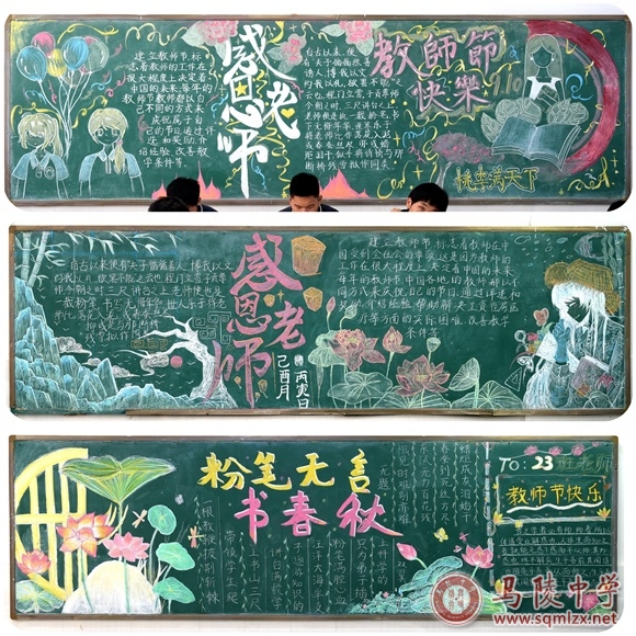 高一、高二年级各班教室内,一面面内容丰富、设计新颖的黑板报,正不断吸引着过往师生的目光。同学们用手中的粉笔和心中的创意,表达对老师的深深敬意和感激之情。黑板上,一幅幅图文并茂、色彩鲜艳的作品映入眼帘,既有对老师无私奉献的颂扬,也有对未来学习生活的美好憧憬。经评选,高一年级和高二年级各有8个班荣获一等奖;高一年级21个班、高二年级24个班获得二等奖。让我们一同欣赏部分一等奖黑板报的精彩展示!