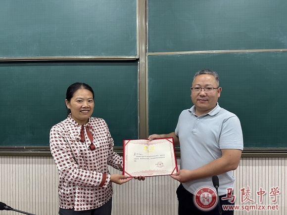 大会选举戴荣斌为家委会主任,袁金花代表年级颁发聘书。