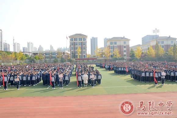清晨,阳光洒满大地,陵中的校园显得格外庄严肃穆。全体师生面向国旗,肃立致敬,齐声高唱国歌,鲜艳的五星红旗在众人的注视下冉冉升起,迎风飘扬。操场上,五星红旗迎风招展,与蓝天白云交相辉映。