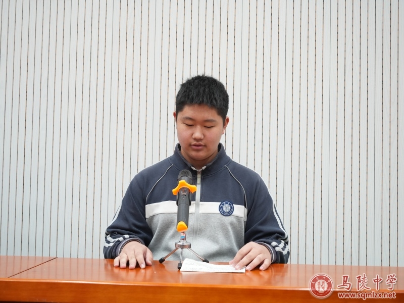 会议第七项议程,集体宣誓。由高三(2)班张锦鹏同学领誓,全体同学共同宣誓。