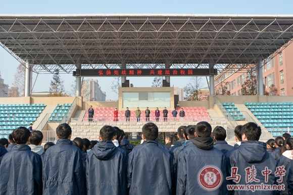 为进一步提升学生的法治意识和法律素养,推动学校法治教育的深入开展,引导学生学法、懂法、守法,12月2日我校举行了以“弘扬宪法精神,共建法治校园”为主题的升旗仪式。
