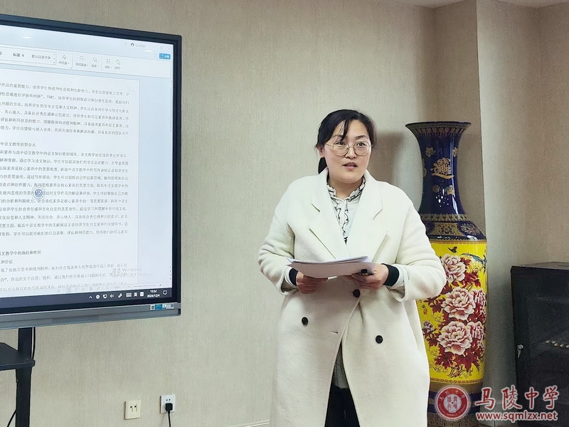 随后,三位课题主持人国星、张静、张莹莹老师分别就自己的课题进行了开题汇报。她们的课题分别是“‘双减’背景下大概念教学理念在高中政治知识点教学中的应用研究”、“基于分析型评价量表的高中语文探究性学习策略研究”和“核心素养背景下基于思辨能力培养的高中鲁迅杂文教学研究”。